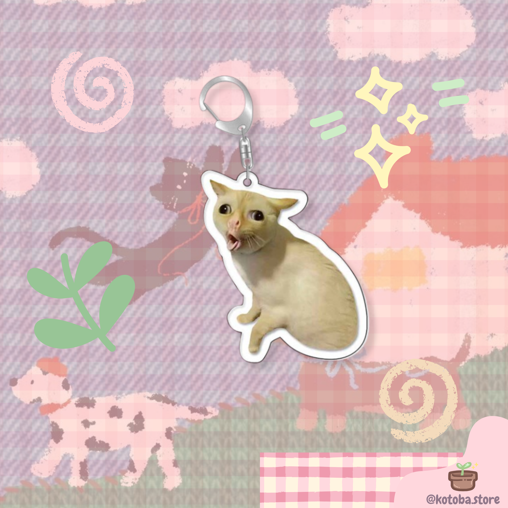 Meet your new favorite accessory! This charming acrylic keychain features beloved meme characters like Cheems and adorable cats that'll make you grin every time you grab your keys. Crafted from durable acrylic, it's lightweight yet sturdy enough for daily use. Perfect for meme lovers, pet enthusiasts, or anyone who wants to inject some silly fun into their everyday carry. Attach it to your keys, bag, or backpack and let your playful side shine. A delightful little treasure for those who live for the laughs!